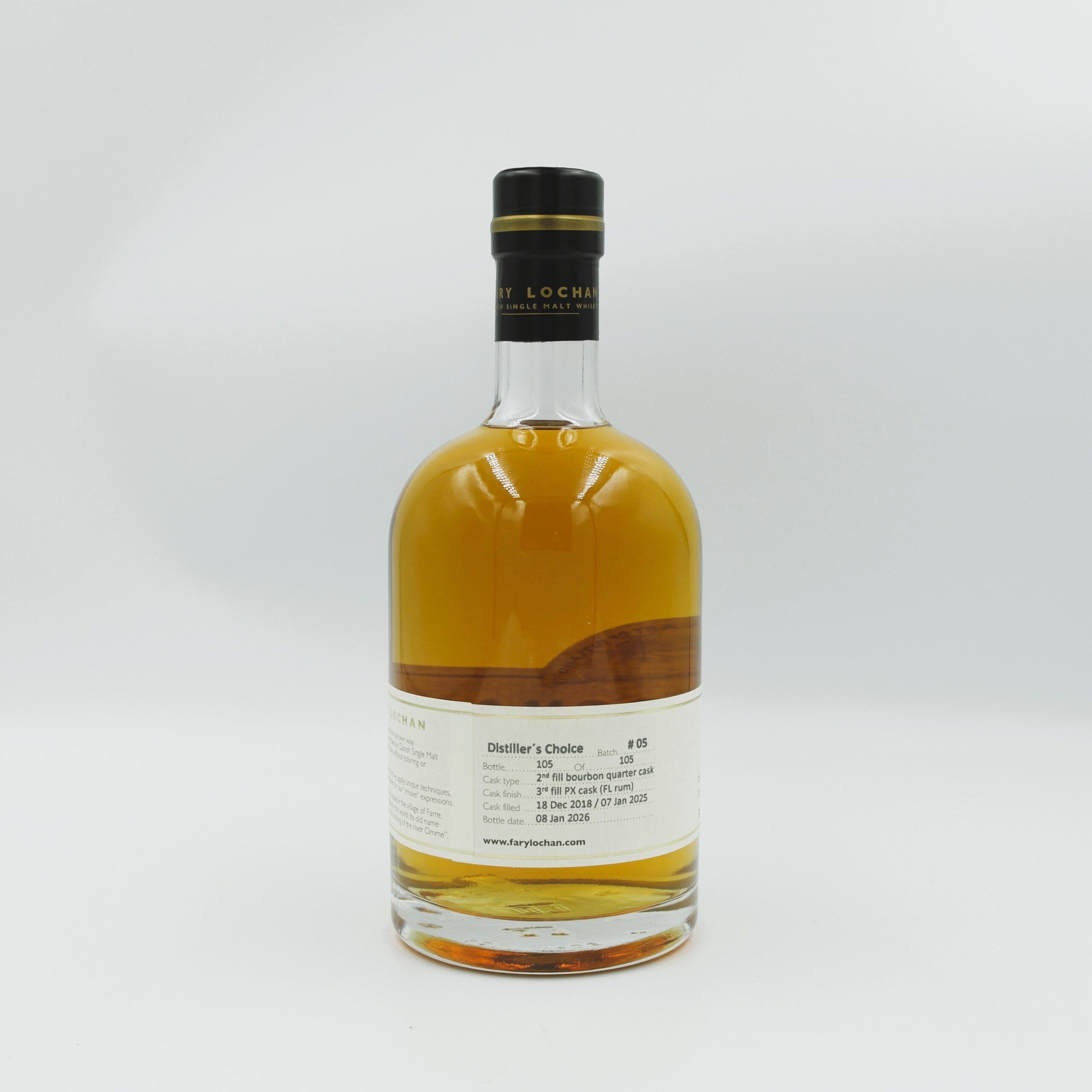 Finish: 1 år på 1 stk. 3rd fill PX sherry cask (50 l.) Fadet har tidligere indeholdt vores første egen produceret rom.